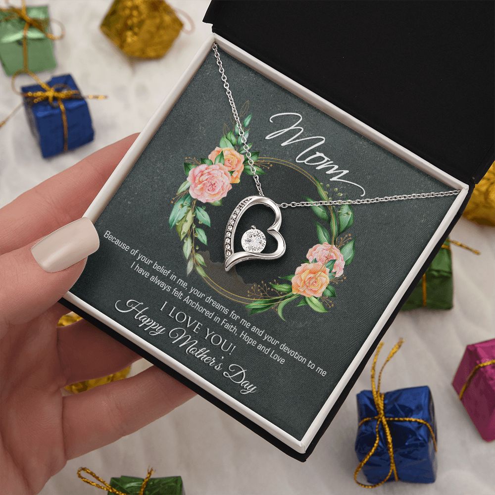 Mother's Day Necklace Heart Cubic Zirconia Special Message Inset