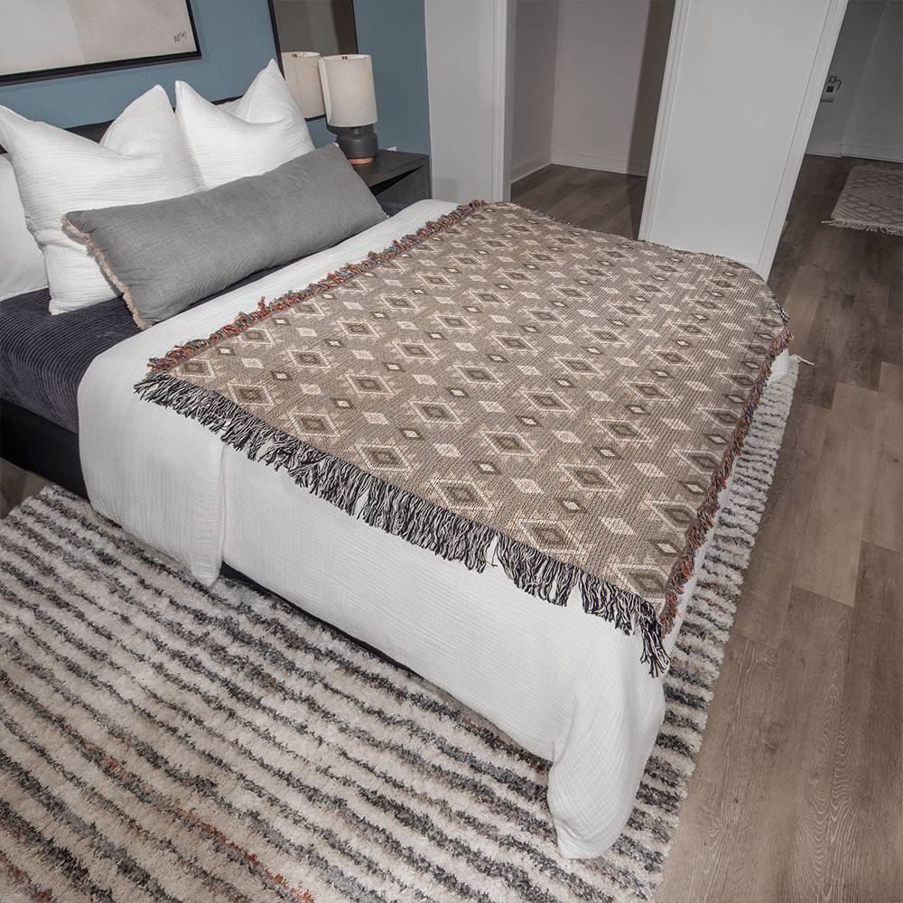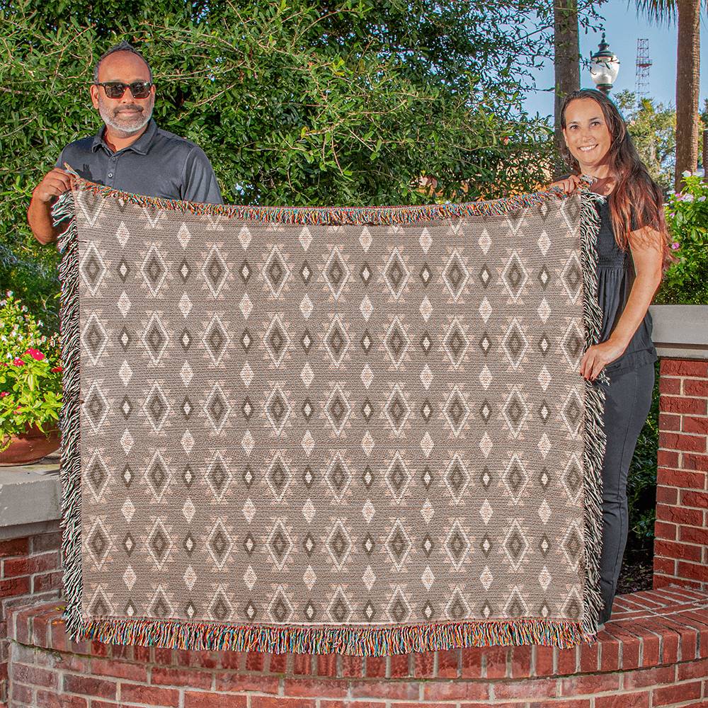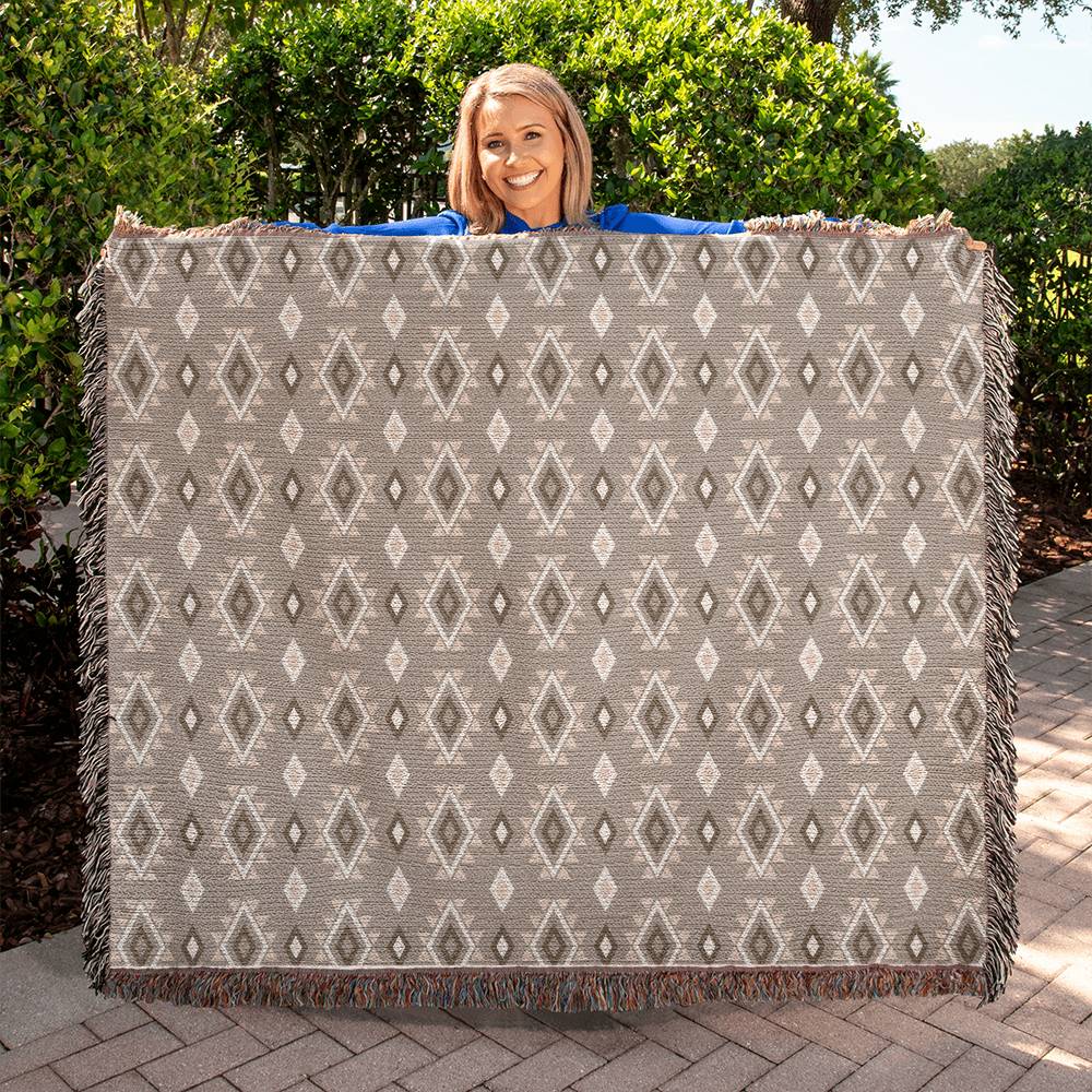 Southwestern Cotton Woven Blanket, Heirloom Blanket with Fringe