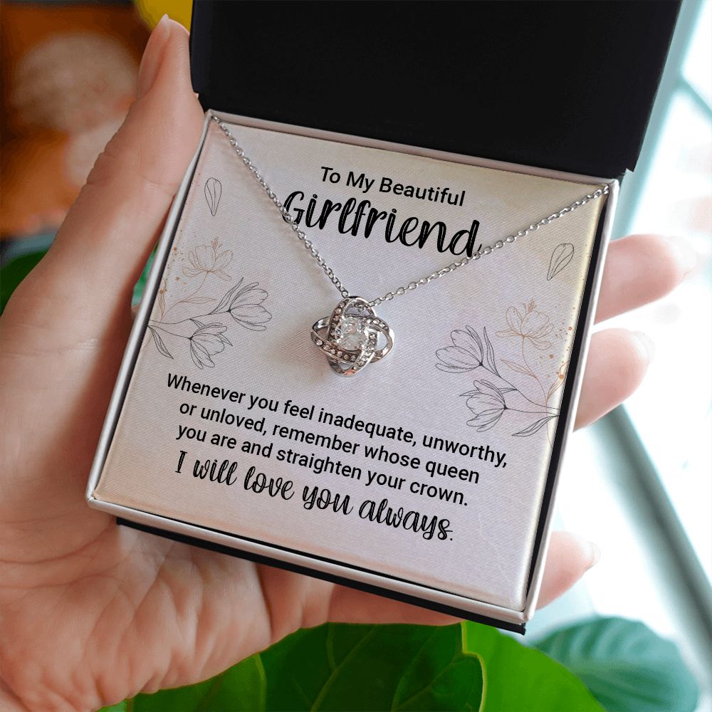 Love Knot Necklace for Girlfriend, Gifts for Girlfriend, White or Yellow Gold Cubic Zirconia